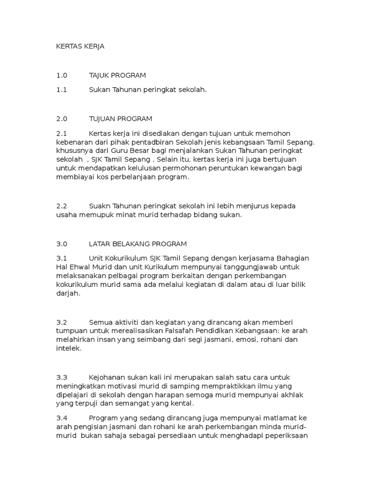 Contoh Kertas Kerja Program Sekolah Reviewmultifiles